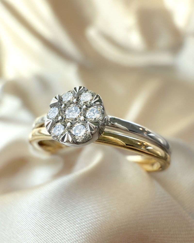 14 karaats bicolor gouden dames ring met briljant geslepen diamanten, 0.25 crt.