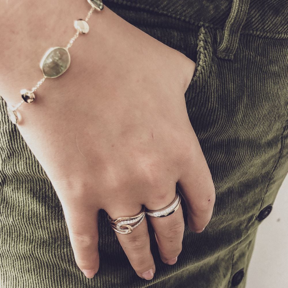 14 karaats geel- witgouden ring met diamanten 0.25 crt. maat 56