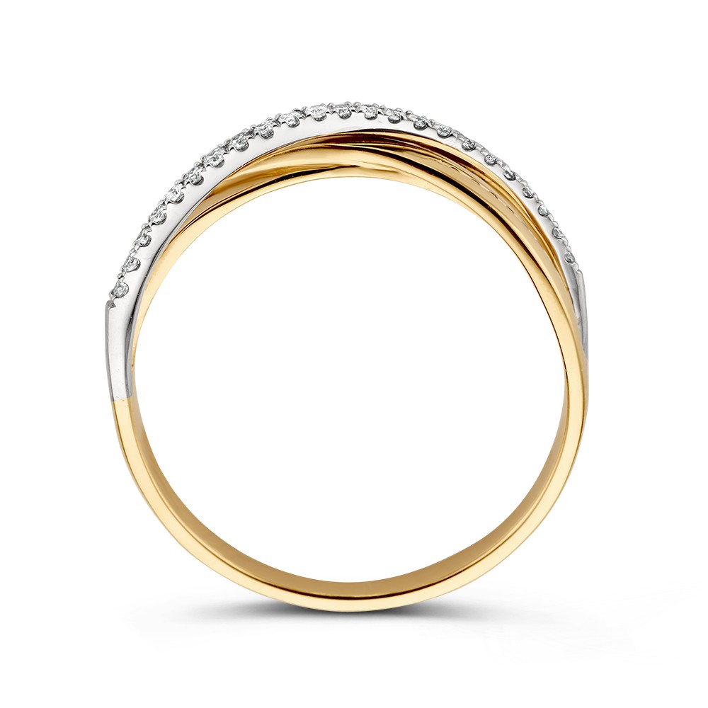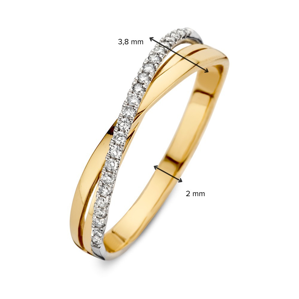 14 karaats geel- witgouden ring met diamaten 0.11 crt. Maat 56