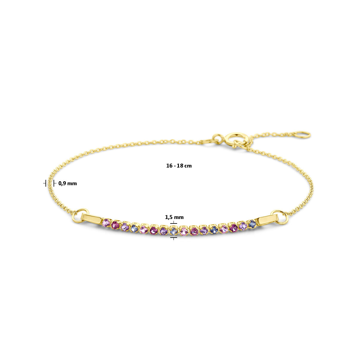 14 karaats geelgouden armband met diverse kleurstenen