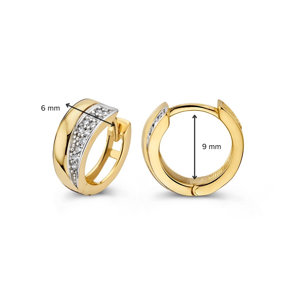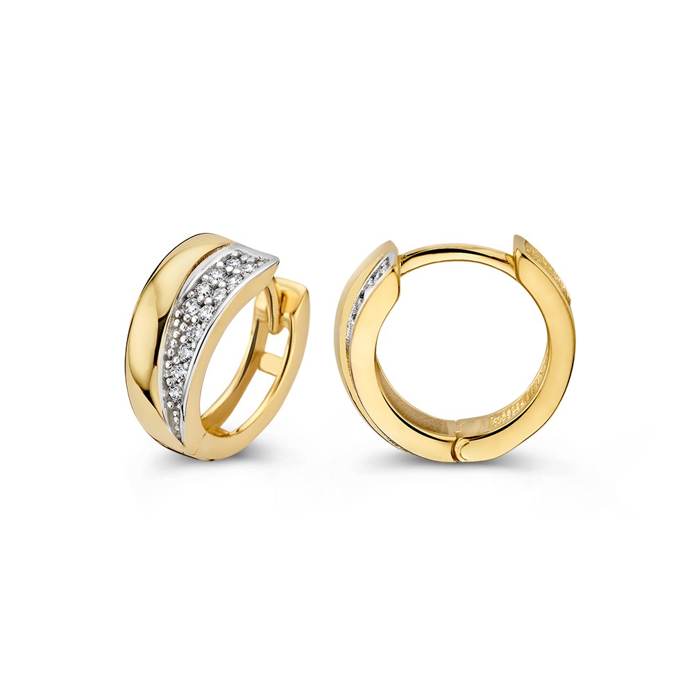 Geelgouden oorringen met zirkonia's in pavézetting.