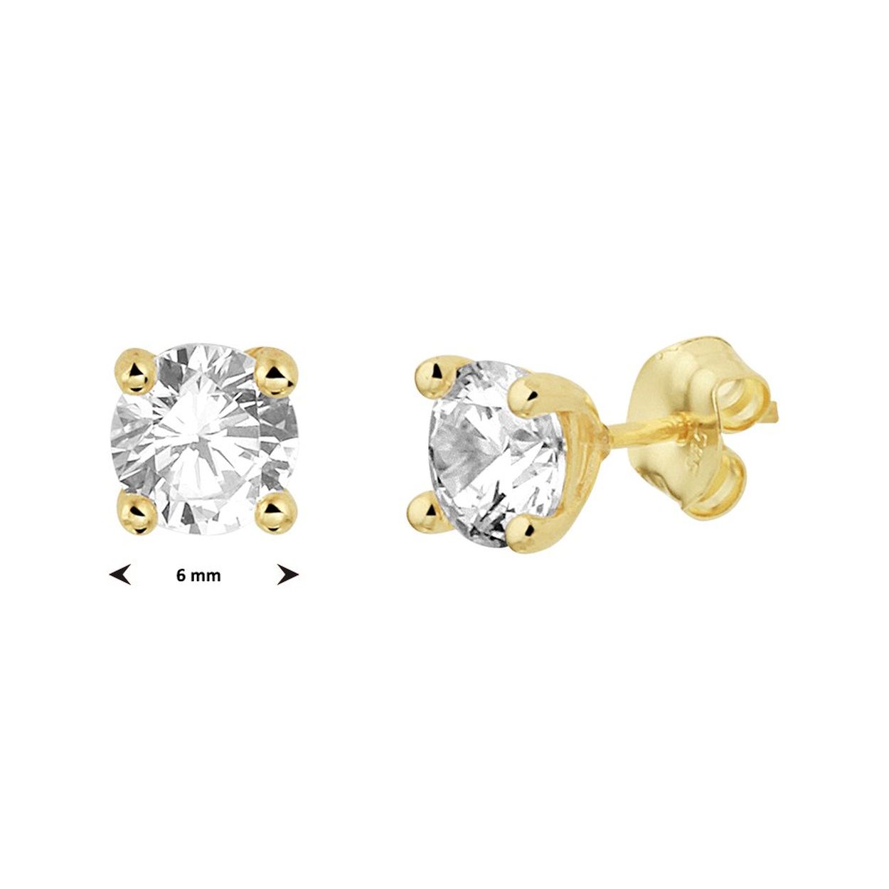 14k Geelgouden oorknoppen uitgevoerd met een heldere zirkonia. De oorknoppen hebben een diameter van 6mm.