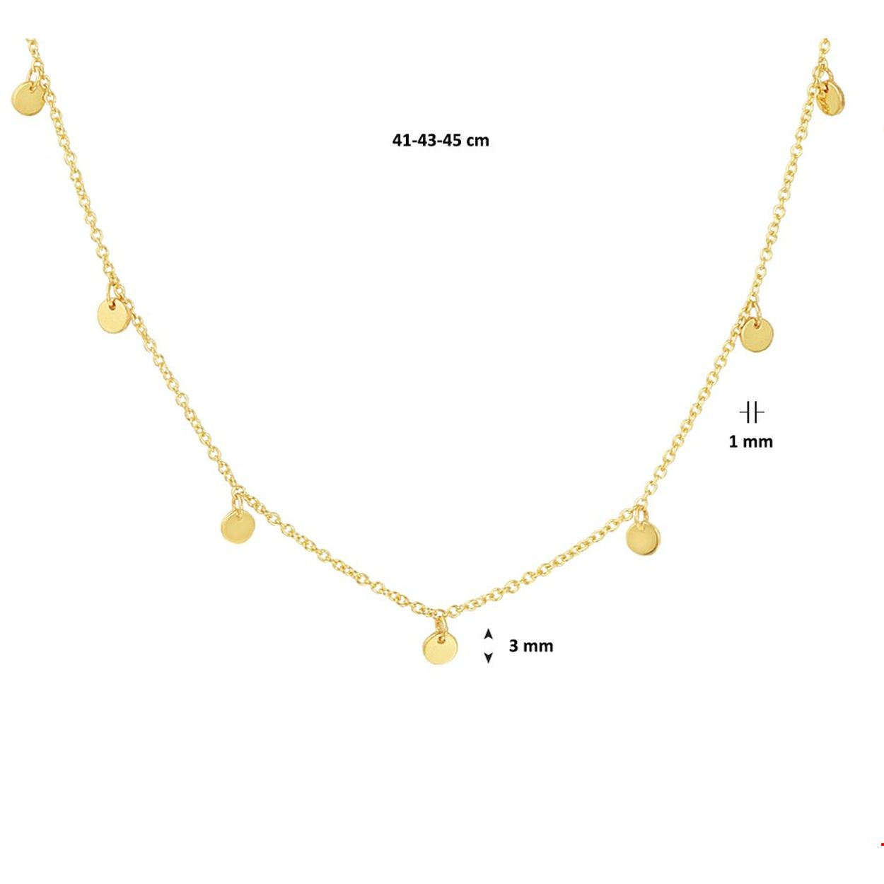 Trendy geelgouden 1mm anker collier uitgevoerd met 3mm ronde hangers en een stevige karabijn sluiting. Het collier heeft draaglengtes van 41, 43 en 45cm en is goed te combineren met bijpassende sieraden uit onze collectie.