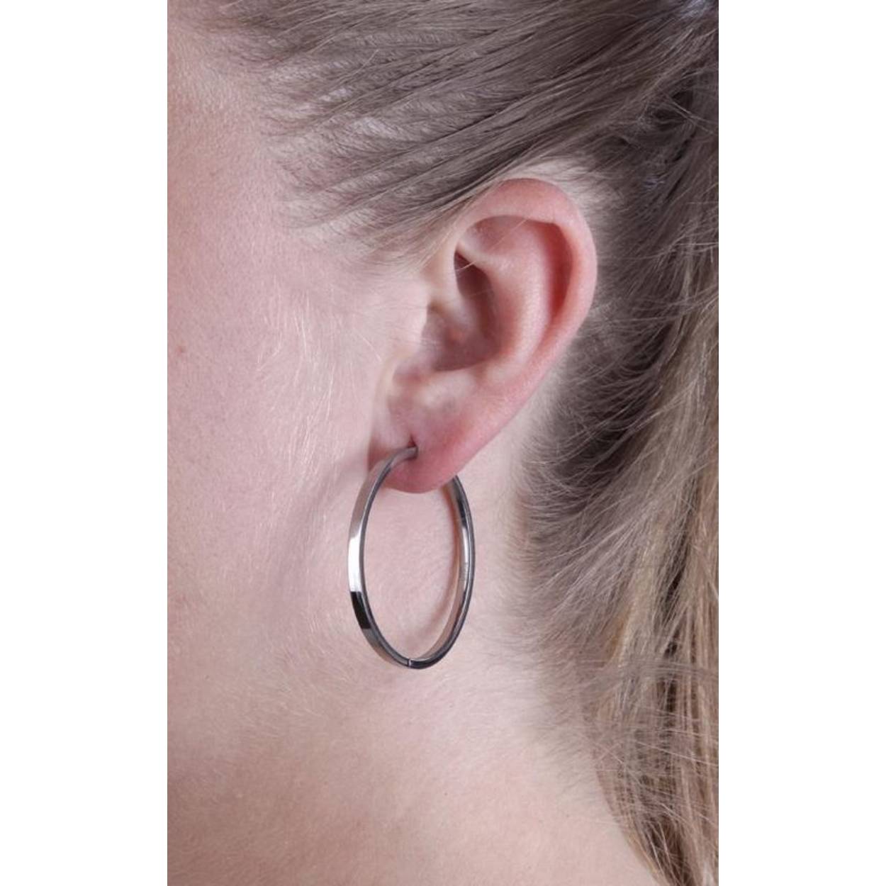Deze 0508-03 Boccia Titanium oorringen zijn zilverkleurig en hebben een glanzend effect. De oorringen hebben een doorsnede van 40mm. Deze oorringen zijn simplistisch & stijlvol. Ook is titanium een huidvriendelijk, hard en duurzaam materiaal.