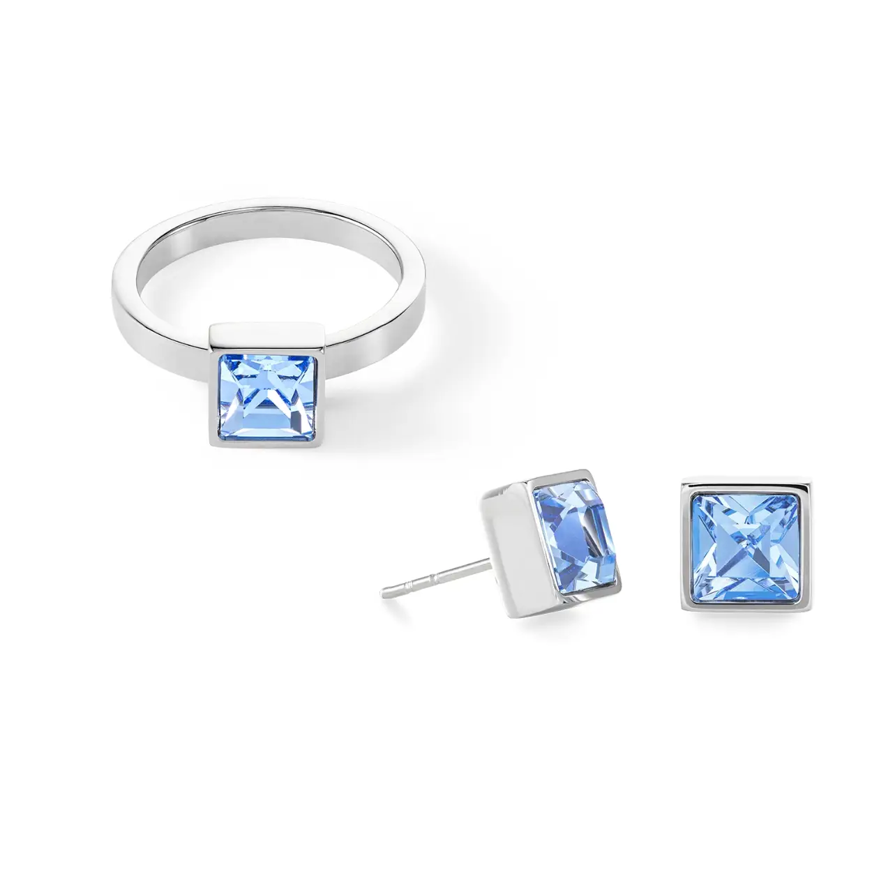 Coeur de Lion ring gemaakt van zilverkleurig edelstaal met blauwe kristal mt. 58