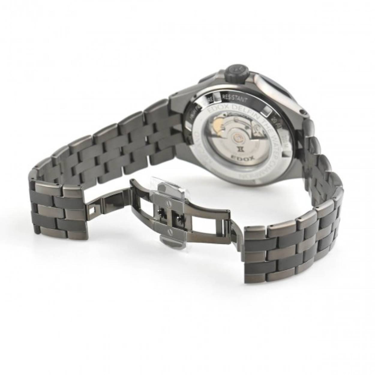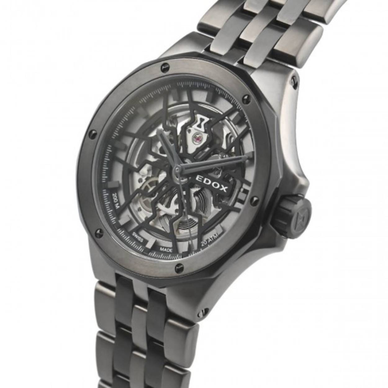 Edox Delfin Mecano 85303 357GNM NGN is een prachtig mechanisch (automatisch) horloge. Het omarmt een ongelooflijk ontwerp met horologische stamboom. Dit is direct zichtbaar met de prachtige skeleton wijzerplaat, waardoor je de Edox Cal. 85 ziet. De wijzerplaat creëert een ongelooflijke combinatie met de duurzame PVD-gecoate kast en geïntegreerde band. Het horloge wordt natuurlijk geleverd met saffierkristal, 200m waterbestendigheid en een hoog afwerkingsniveau. Het horloge heeft al het Delfin DNA maar combineert het met een nieuwe eigentijdse look. Nog steeds geschikt voor bijna elke uitdaging, maar steeds meer een blikvanger!