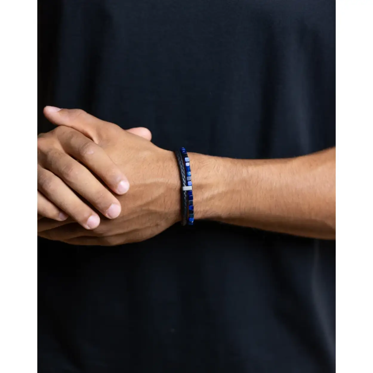 De armband is afgewerkt met 3 verschillende blauwe kleuren Tijgeroogsteen. Tijgeroog wordt ook wel 'de steen der Krijgers' genoemd. Het is een krachtige steen die je beschermt tegen negatieve invloeden. Hij zou je extra moed, kracht en doorzettingsvermogen geven.