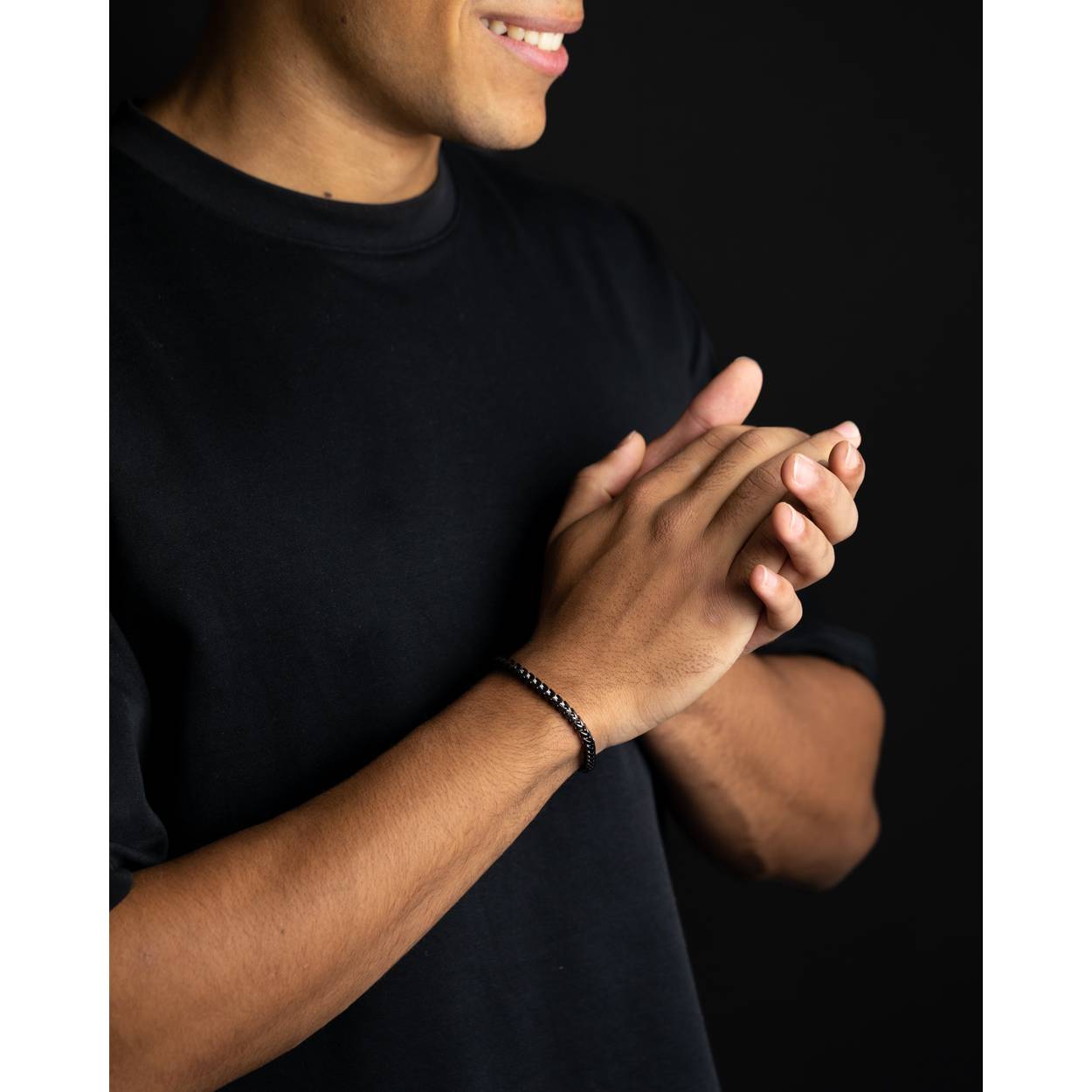 De Milia Black armband is een prachtige 5mm vossenstaart armband met een op maat gemaakte sluiting. Hij is +-1 cm verstelbaar, dus je hoeft je niet al te veel zorgen te maken over de maatvoering.