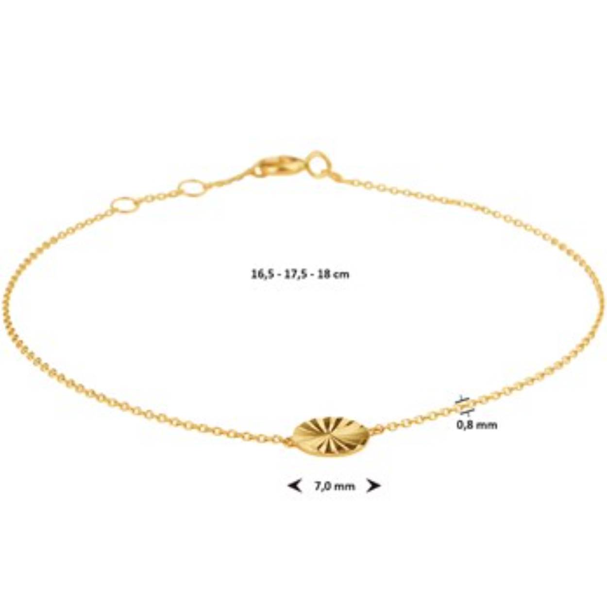 14k Geelgouden armband uitgevoerd met een gediamanteerd afgewerkt rondje. De armband heeft draaglengtes van 16.5, 17.5 en 18cm. Het rondje heeft een diameter van 7mm.