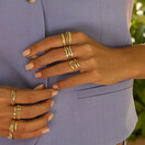 Elegante 14k gouden ring met witte topaas edelstenen in verschillende formaten. Sprankelend licht en perfect voor een verfijnde, moderne look. Leuk om te weten: De vorm is gebaseerd op Kaap de goede hoop!