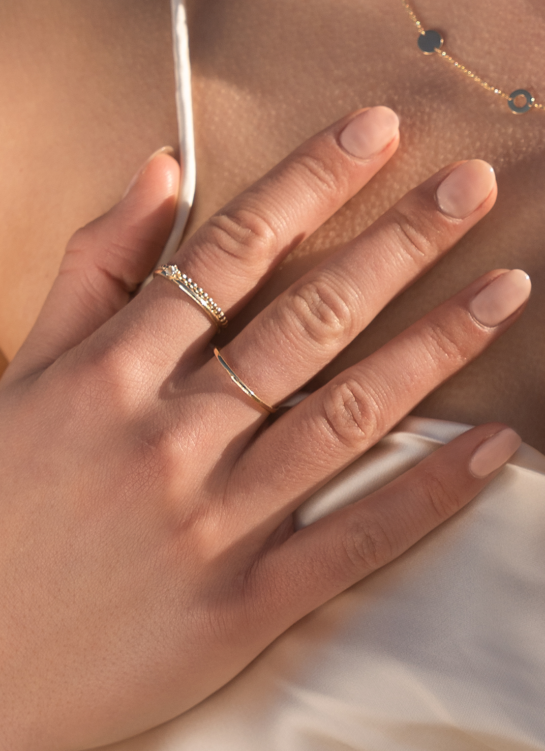 Villa Carmina - White Topaz Een variant op de Villa Carmina ring, nu met een prachtige witte topaas edelsteen! De 14K gouden ring bestaat uit een gladde ring en een ring met gebubbelde band. Combineer hem met je andere Jackie favorieten en creëer een unieke look. In Love With Barcelona Zon, stand, tapas, sangria en kunst. Sí, Barcelona! Jackie heeft tijdens haar reis naar Spanje inspiratie opgedaan in de wereldstad Barcelona. De Gaudí huizen, de kunstwerken in het gekleurde Parc Güell en natuurlijk de adembenemende Sagrada Família: elke plek was nog mooier dan zij zich had voorgesteld. Deze stad heeft een plekje in Jackie’s hart veroverd. Ontdek nu de nieuwe 14 karaat gouden sieradencollectie ‘In Love With Barcelona’. Specificaties - Ring - Materiaal: 14 Karaat - Geelgoud - 585 - Breedte: 3,5mm - Artikelnummer: JKR23.218
