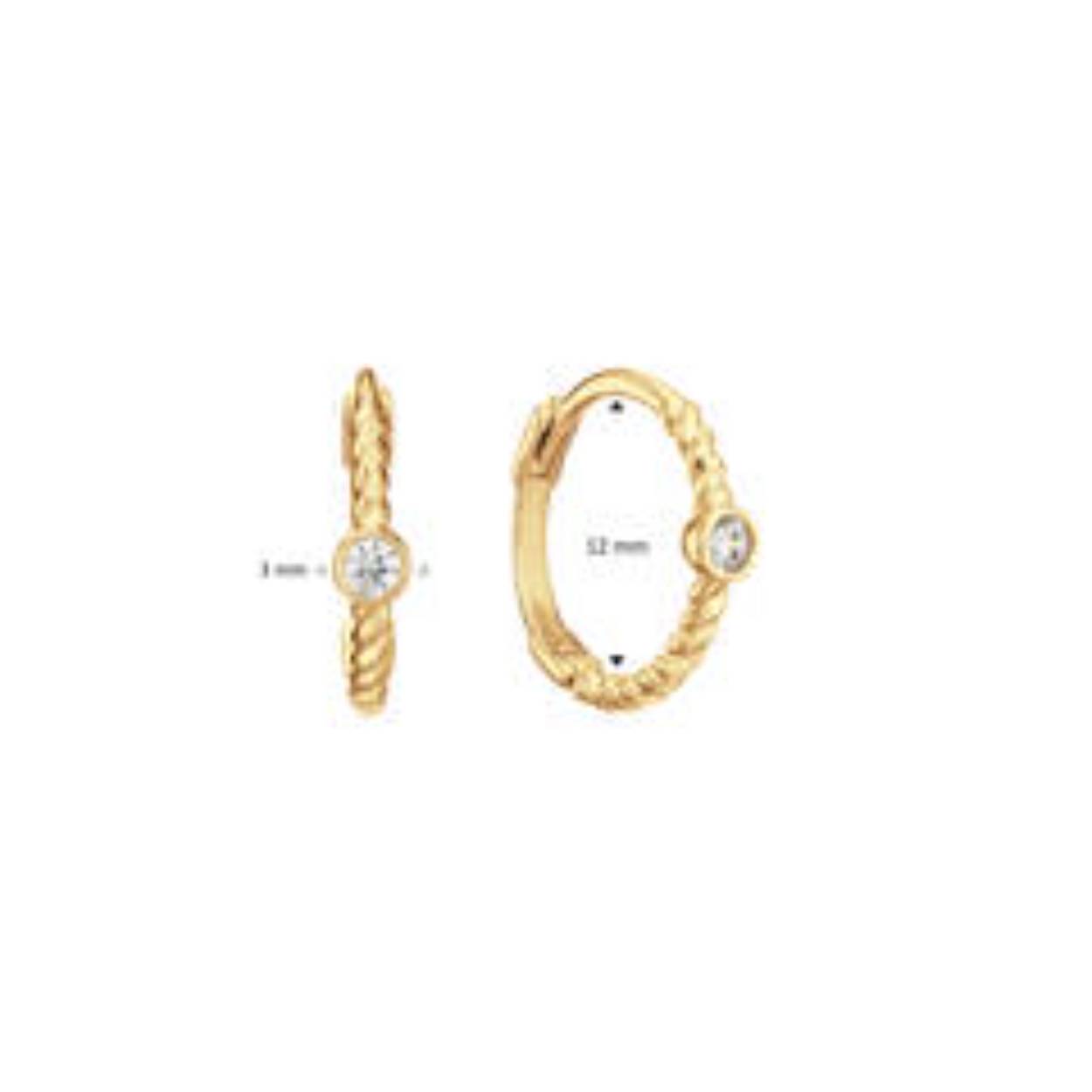 De 14 karaat gouden Jackie Oasis White Topaz oorringen bevatten een sprankelende witte topaas edelsteen en hebben een gedraaid detail in de oorring.