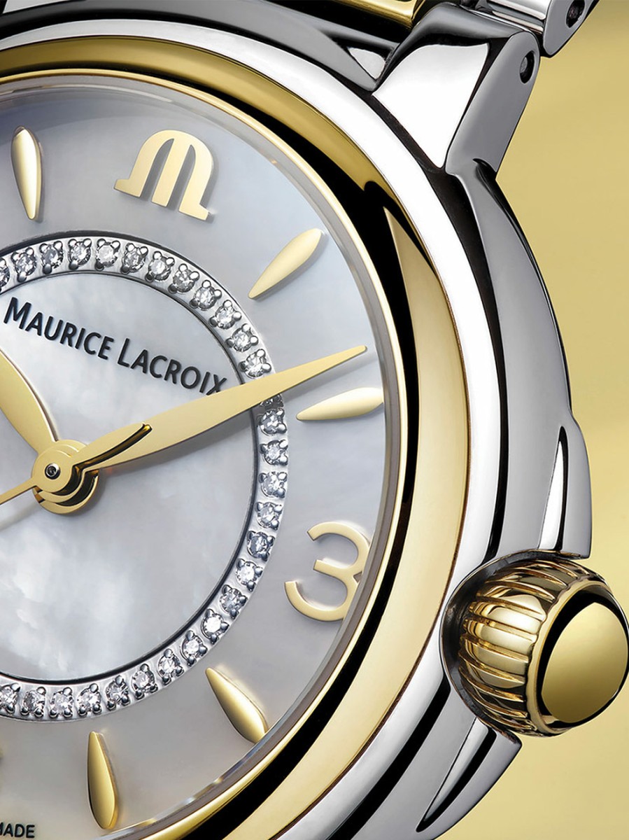 Dit is een horloge van het merk Maurice Lacroix gemaakt voor dames.
