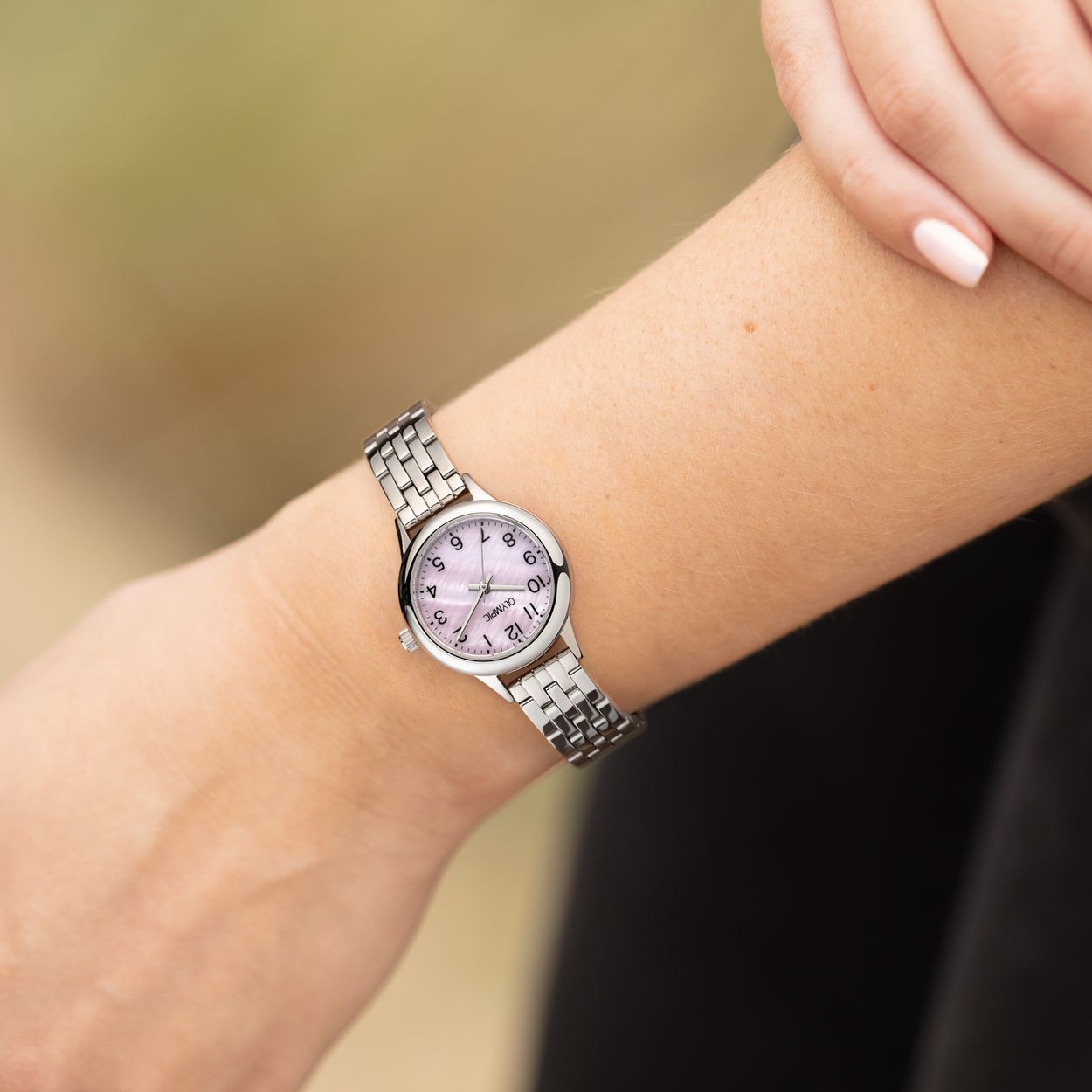 Dit unieke Olympic horloge met artikelnummer: OL80DSS001 is een dameshorloge met een chique uitstraling. Het horloge heeft een ronde stalen kast met een parelmoer wijzerplaat met cijfers. Aan de kast zit een stalen fijne schakelband met vouwsluiting. Het horloge heeft een mineraalglas, een doorsnee van 28mm en is 5ATM.