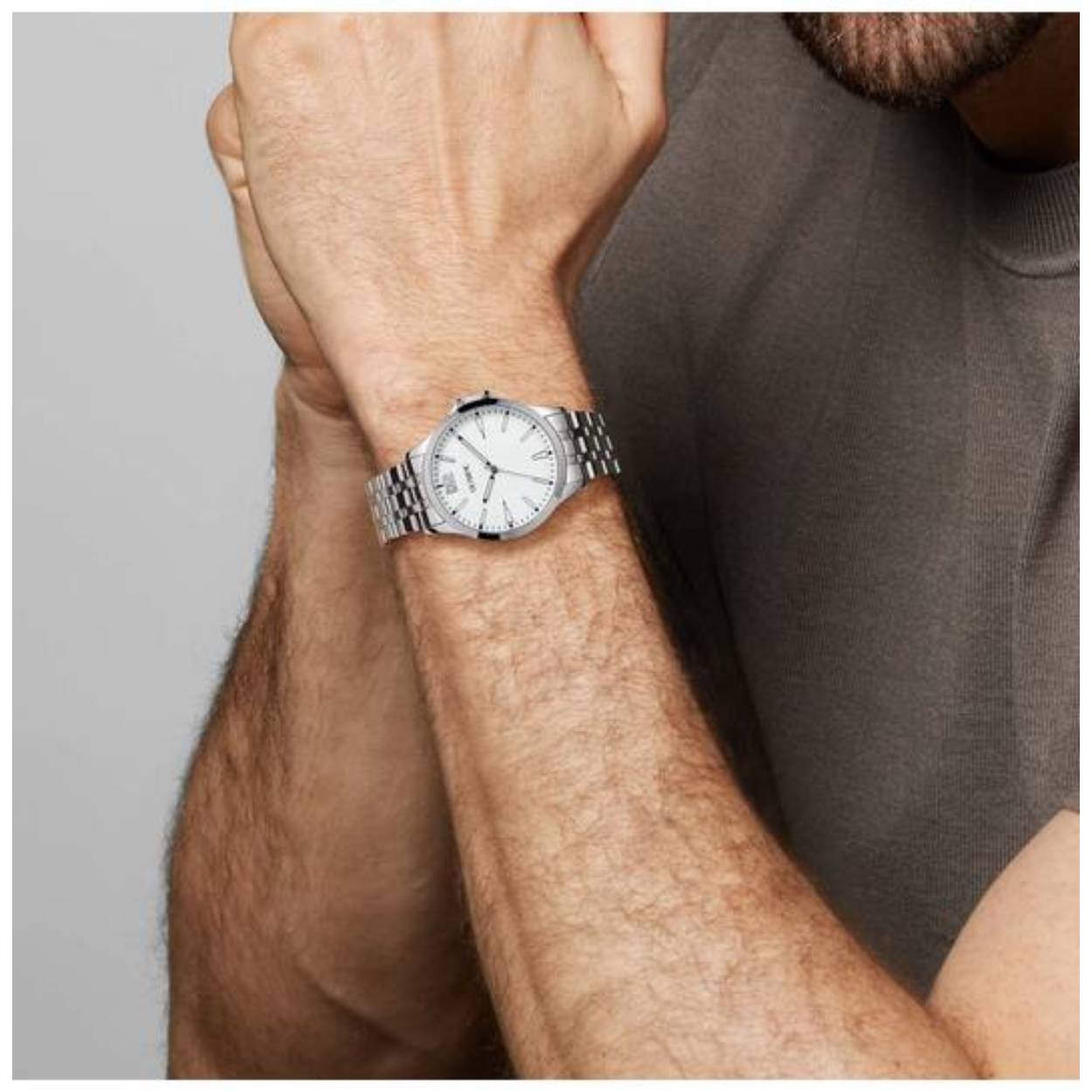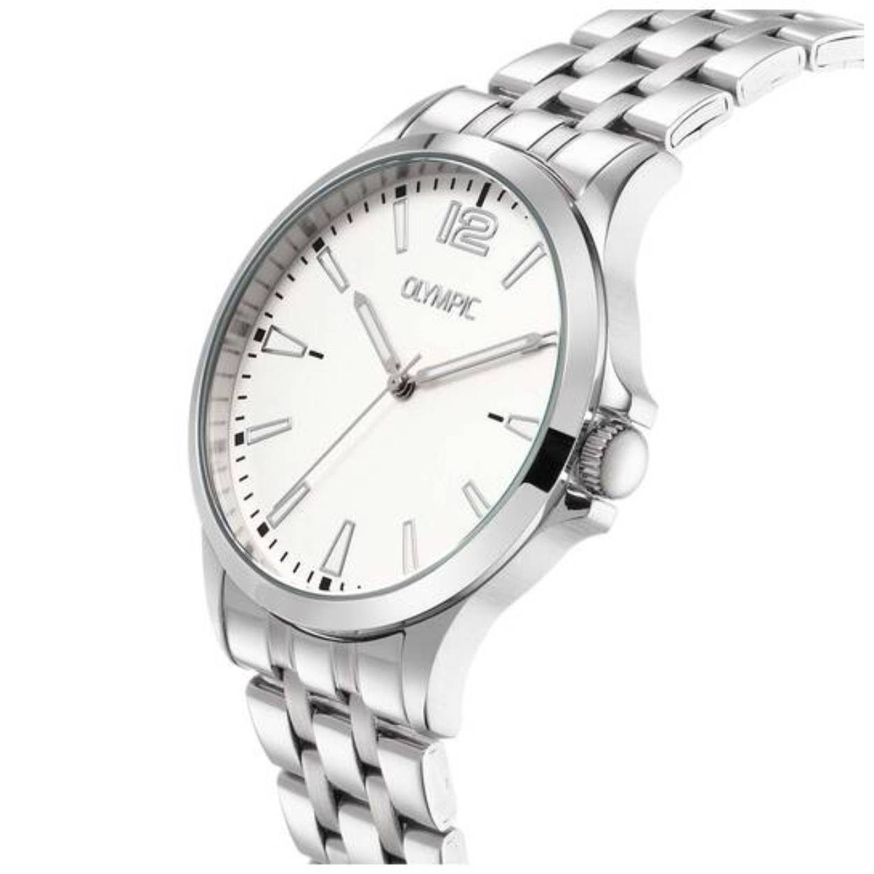 Dit unieke Olympic horloge met artikelnummer: OL72HSS404 is een herenhorloge met een classic sportieve uitstraling. Het horloge heeft een ronde stalen kast met een witte wijzerplaat met de 12, streepjes en lumibrite accenten. Aan de kast zit een zilverkleurige stalen schakelband met vouwsluiting. Het horloge heeft een mineraalglas, een doorsnee van 40mm en is 5ATM.
