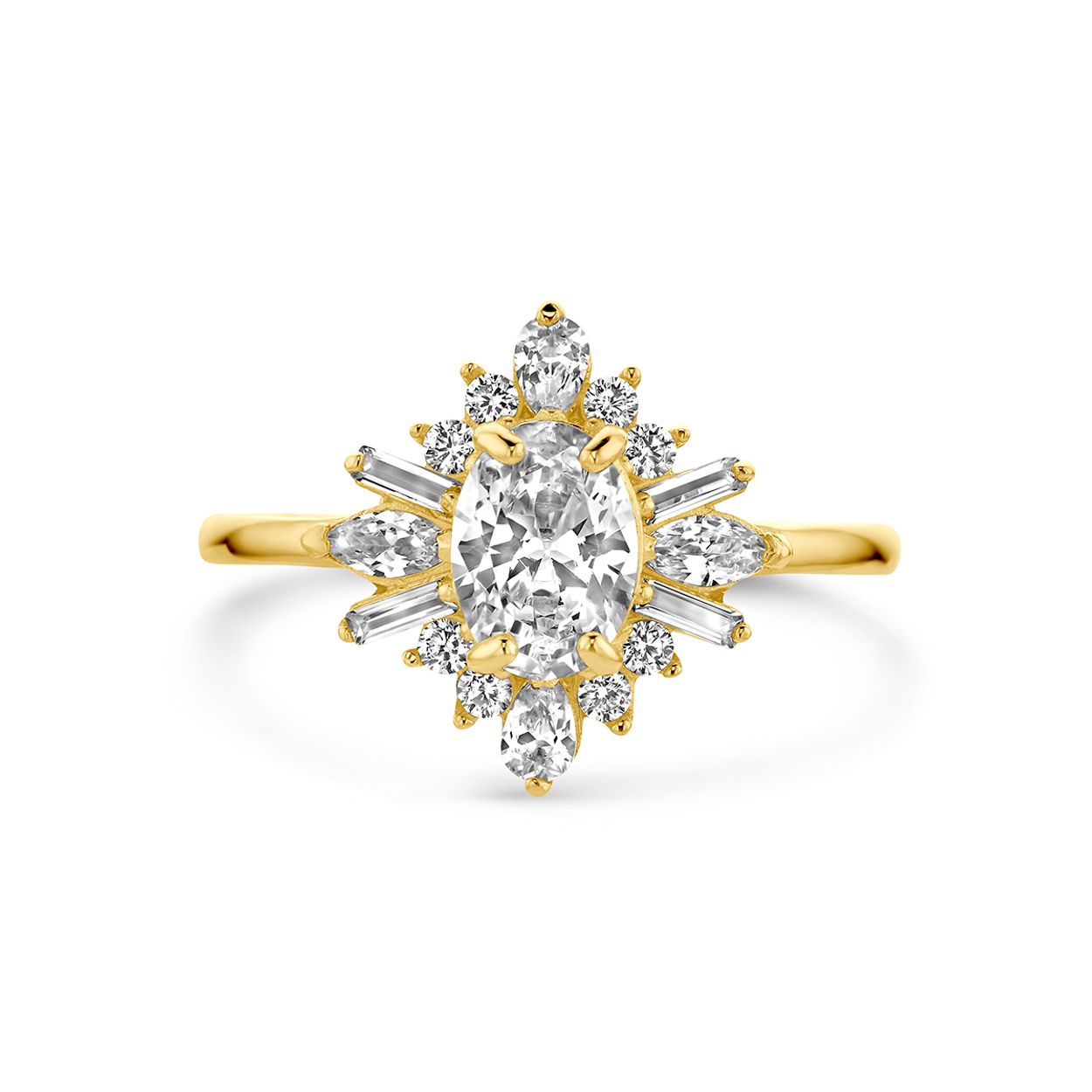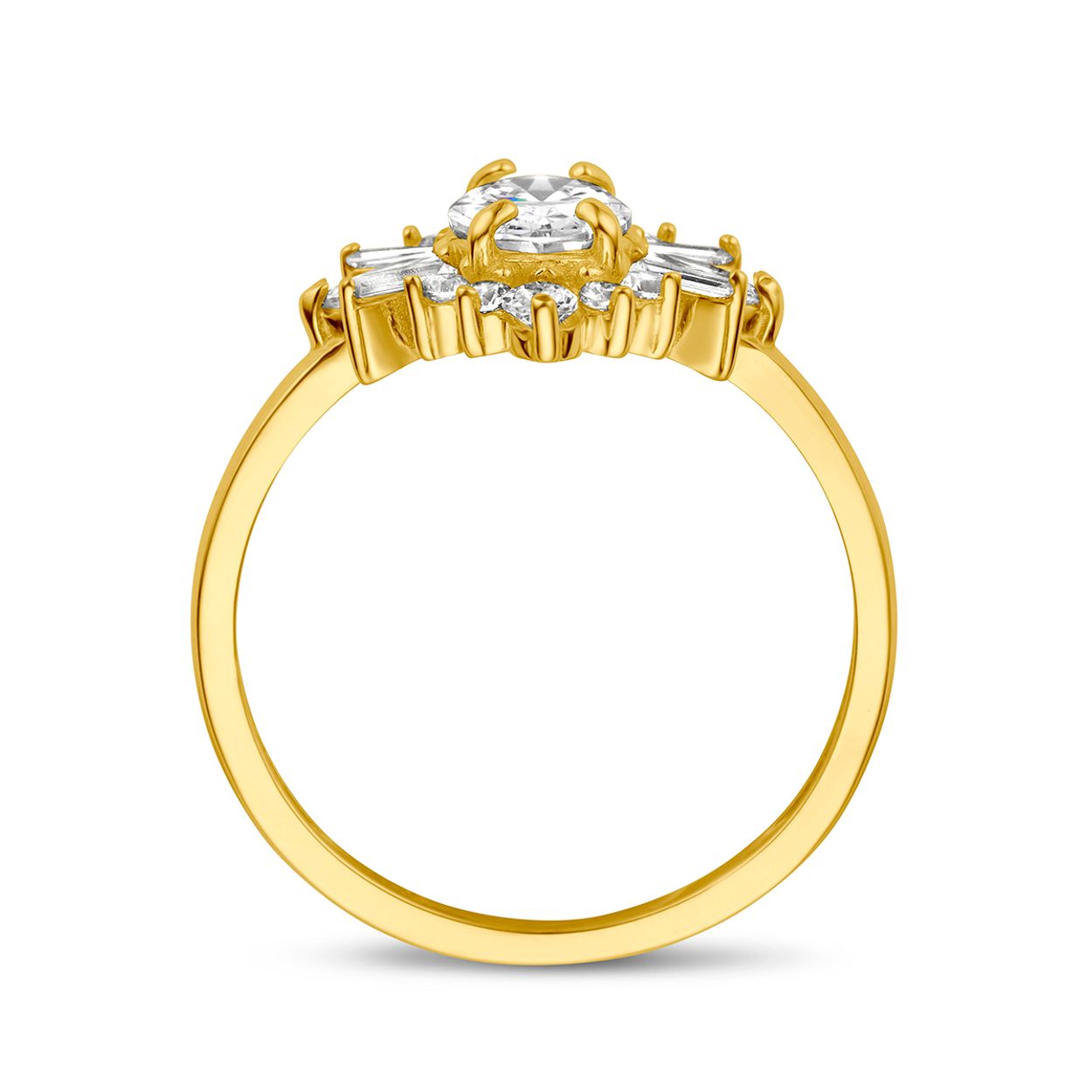 14k Geelgouden ring uitgevoerd met zirkonia. De ring heeft een breedte van 13.5mm.