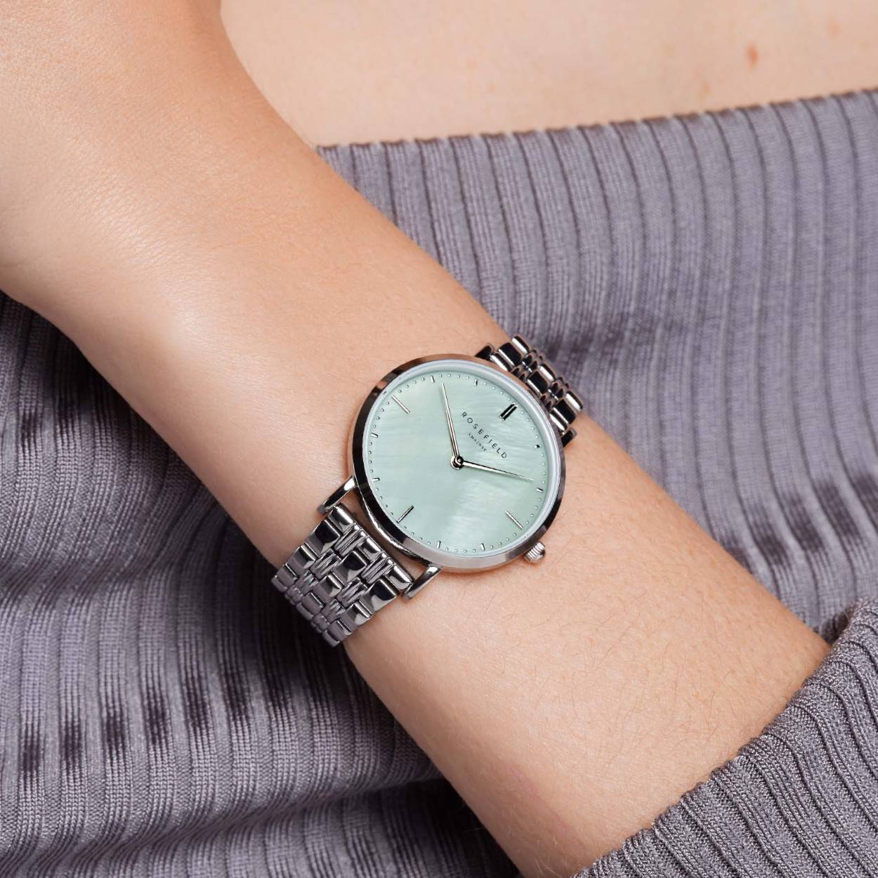 Rosefield horloge 'The Upper East Side' Green Pearl Silver