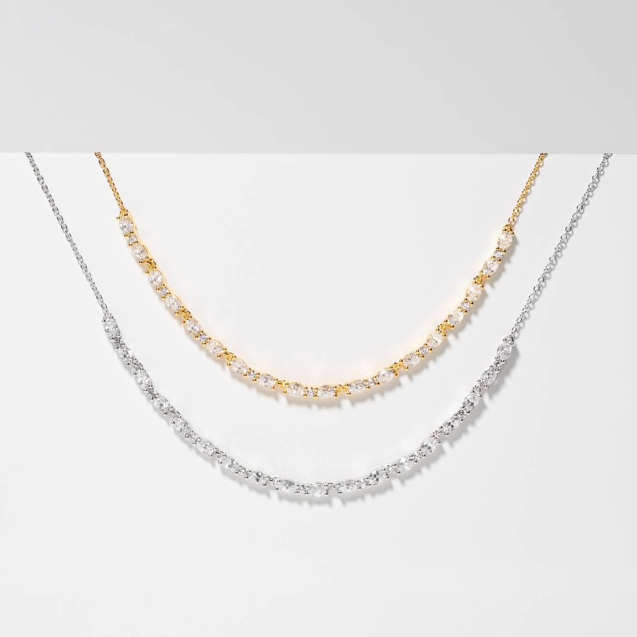 Collier gemaakt van 18 karaats verguld 925 sterling zilver, gepolijst oppervlak met facetgeslepen witte zirkonia's.