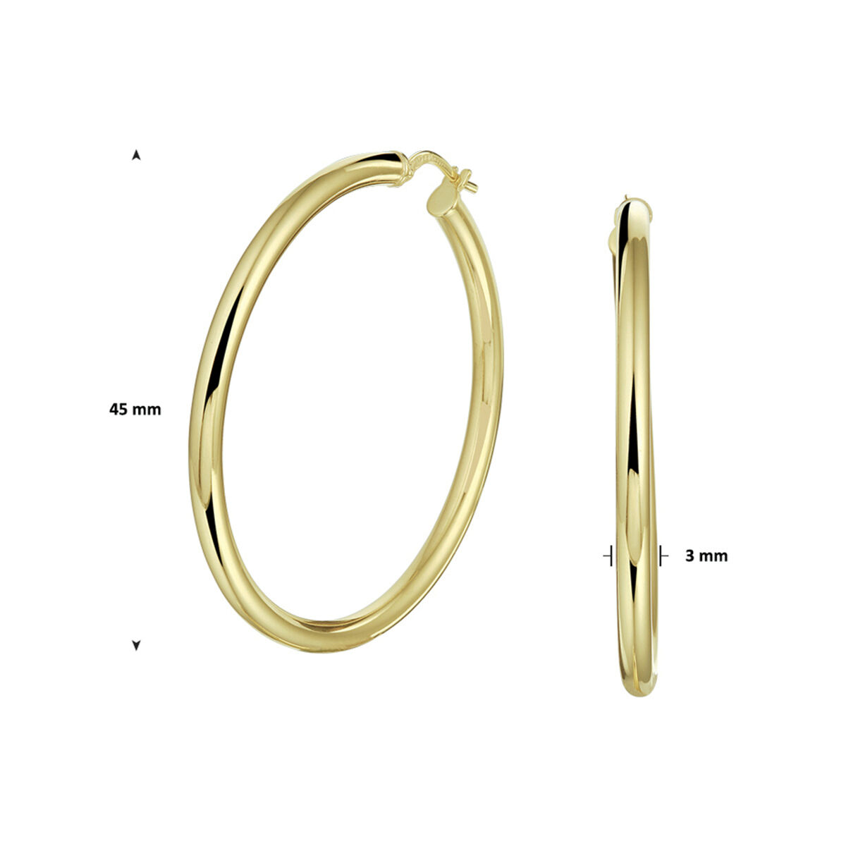 De SilGold oorringen 14 karaats geelgoud zijn luxe oorringen met een afmeting van 45 x 3 mm en een zilveren kern, modelnummer 5000181.