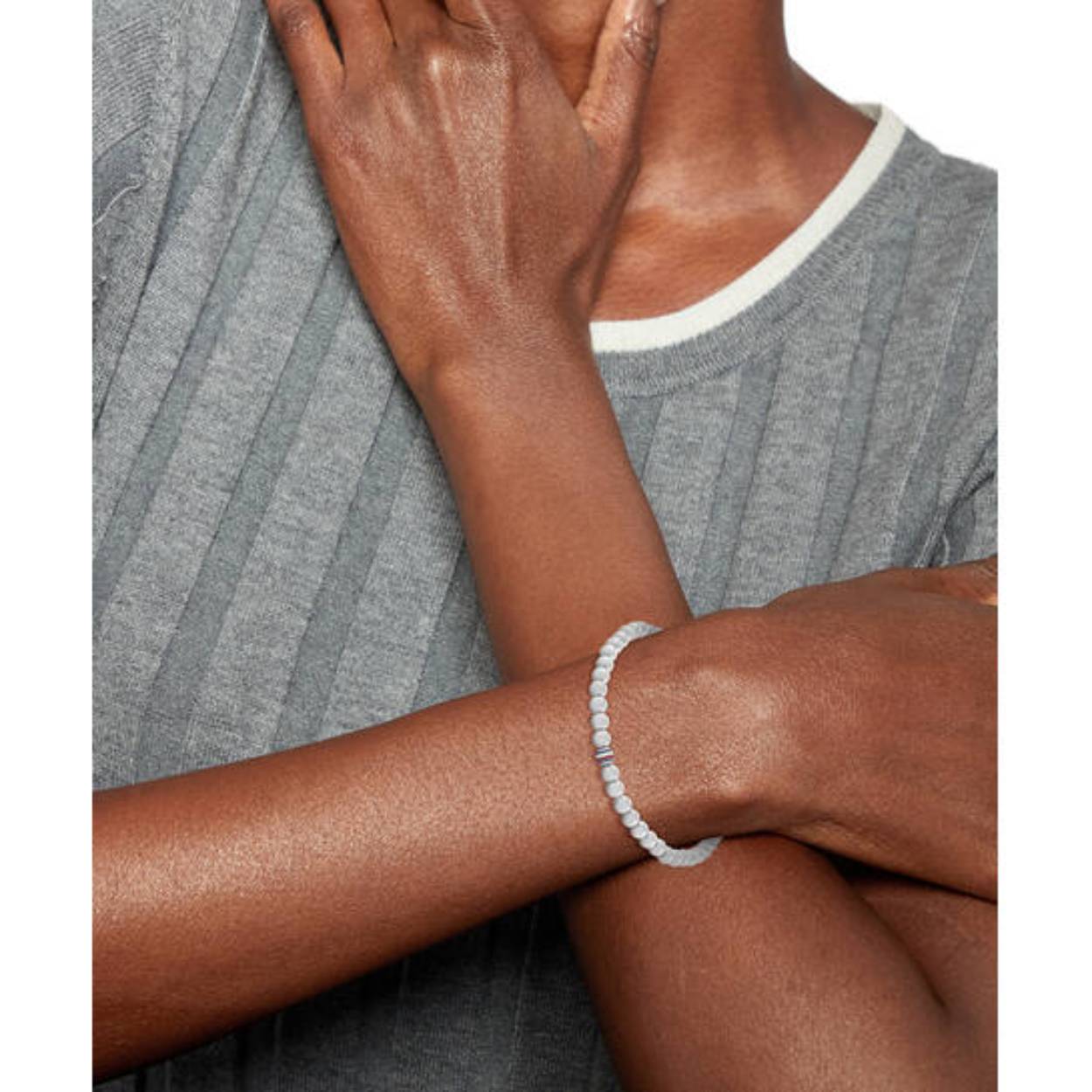 Deze armband van Tommy Hilfiger uit de jewelry serie METAL BEADS met nr: TJ2780937is een opvallend model. De dames armband is van elastiek met daarop zilverkleurige stalen balletjes van 4mm geregen. Op 1 van de balletjes zit  het gekleurde Tommy logo. De armband is geschikt voor een pols van ong. 16,5cm. Door het elastiek is hij rekbaar. Ook leuk te combineren met andere armbanden en sieraden van Tommy Hilfiger.