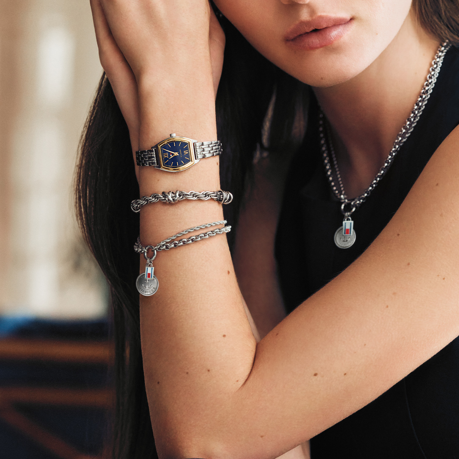 Sinds de lancering van het merk in 1985 is Tommy Hilfiger wereldwijd bekend geworden als pionier van de klassieke Amerikaanse coole stijl. Geïnspireerd door de iconische popcultuur en het Amerikaanse erfgoed. De dames en herencollectie van dit seizoen bestaan uit minimalistische silhouetten en rustieke lederen details. De herenhorlogecollectie biedt iconische uurwerken met roestvrijstalen, lederen en siliconen banden.