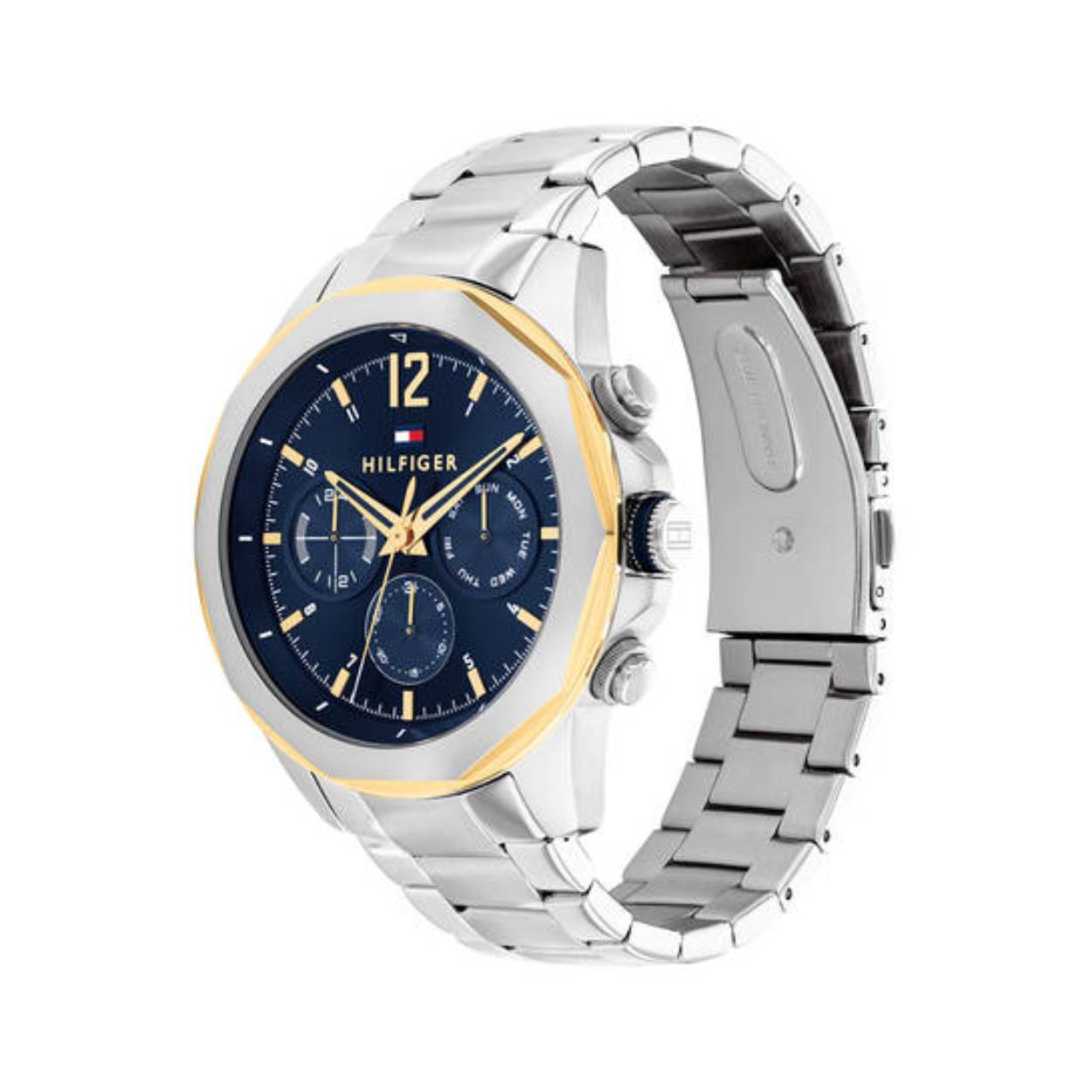 Dit specifieke horloge van Tommy Hilfiger met artikelnr: TH1792059 is een net herenhorloge die je zeker aan je collectie kan toevoegen. Het stalen herenhorloge heeft een ronde zilverkleurige kast met een geschuurde bezel en een blauwe wijzerplaat met daarop de dag.- datum en 24-uursaanduiding. Aan de kast zit een zilverkleurige schakelband met vouwsluiting. Het horloge heeft een mineraalglas, een doorsnee van 46mm en is 5 ATM.