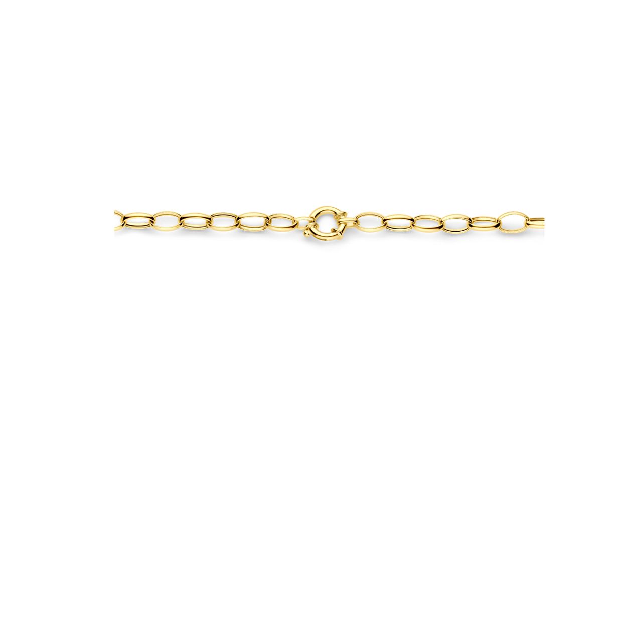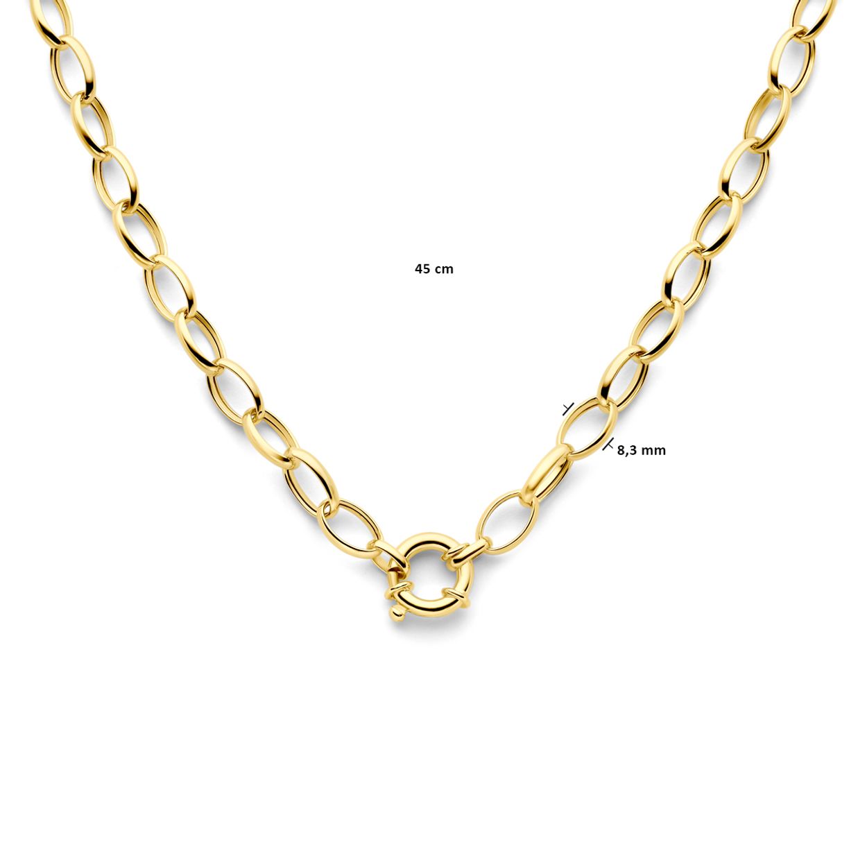 Geelgoud op 925 zilveren collier. Het collier heeft een draaglengte 45cm. De schakelbreedte is 8.3mm. Uitgevoerd met een groot veerslot. Geen garantie op plating.