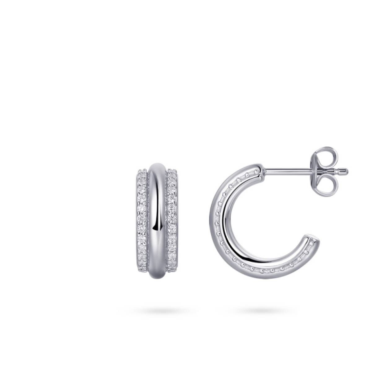 Prachtige zilveren oorringen, gedeeltelijk gezet met zirkonia's en voorzien van een rhodiumlaag voor langdurige glans.