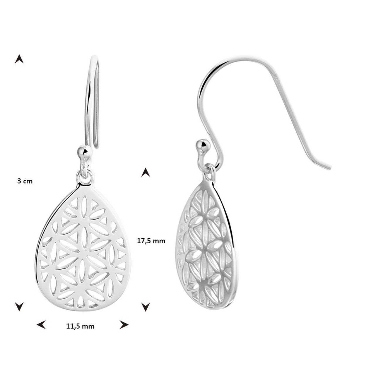 Gerhodineerd 925 zilveren oorhangers in filigrain stijl. De oorhangers hebben een totale hoogte van 3 cm en een breedte van 11.5 mm.