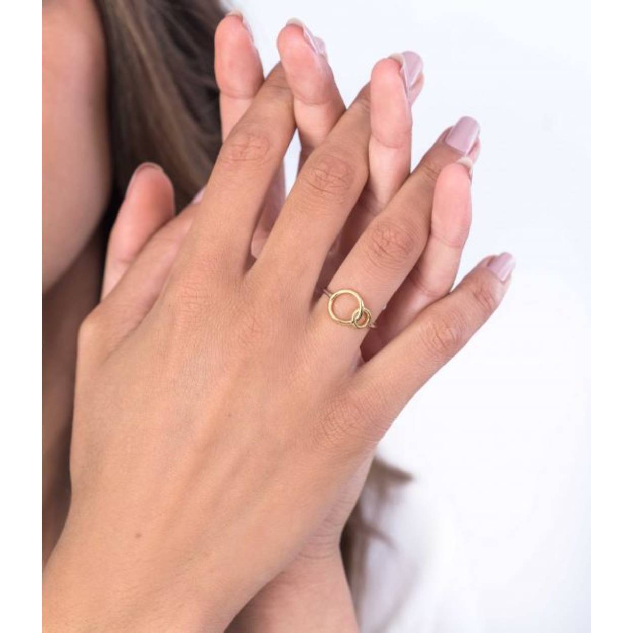 ZINZI zilveren ring geel verguld 2 ronde vormen in elkaar ZIR1278G