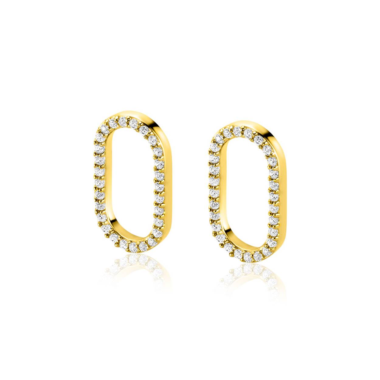 ZINZI gold plated zilveren oorbedels in ovale vorm (15mm), bezet met witte zirconia's. Hang deze oorbedels sierlijk aan je zilveren ZINZI oorringen. De oorringen zijn niet bij de prijs inbegrepen. Vervaardigd van eerste gehalte zilver (925) en extra geelverguld.