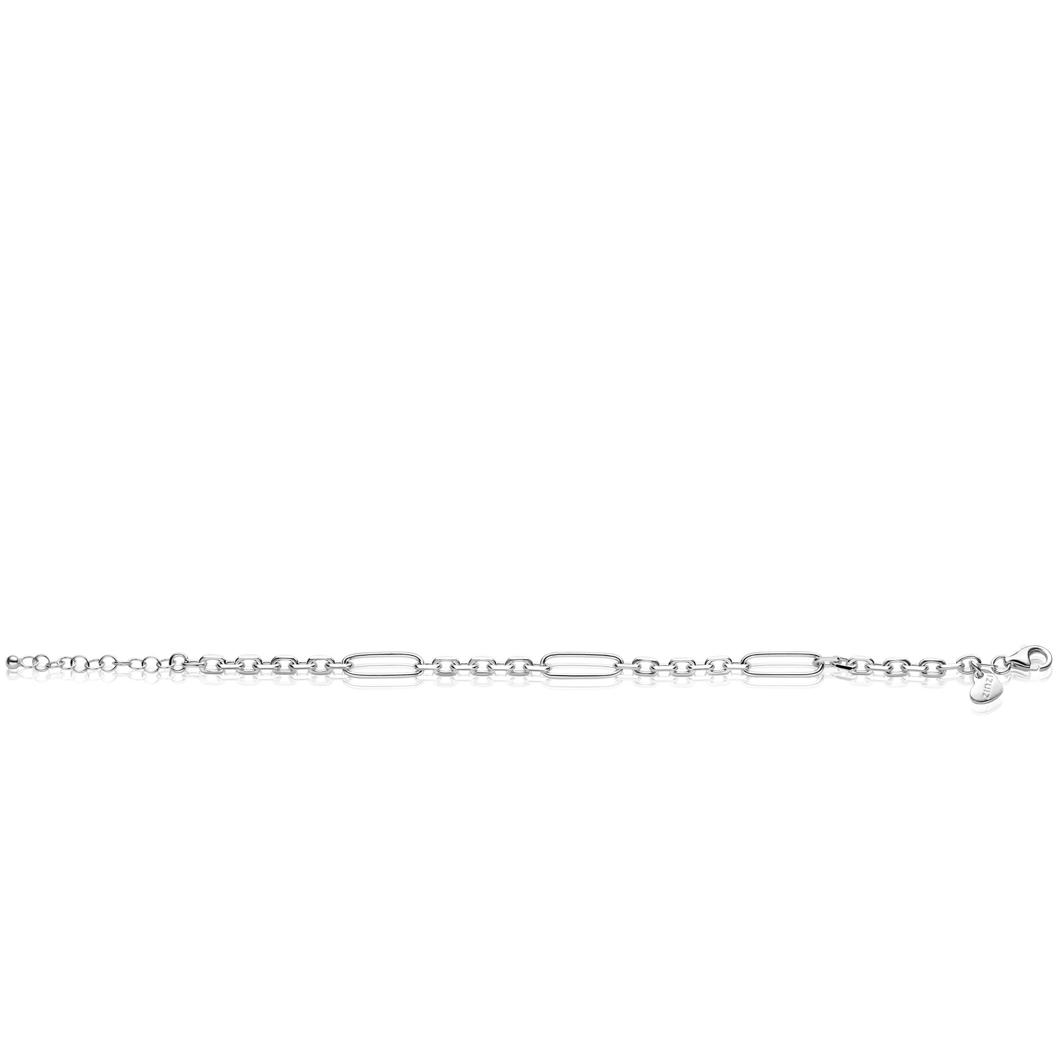 ZINZI zilveren schakelarmband met drie lange ovale schakels. De armband is 5,5mm breed en voorzien van een verlengkettinkje voor optimaal comfort (te variëren tussen 18 en 21cm). De armband is vervaardigd van eerste gehalte zilver (925) en voorzien van een extra rodiumlaag voor een langdurige glans.