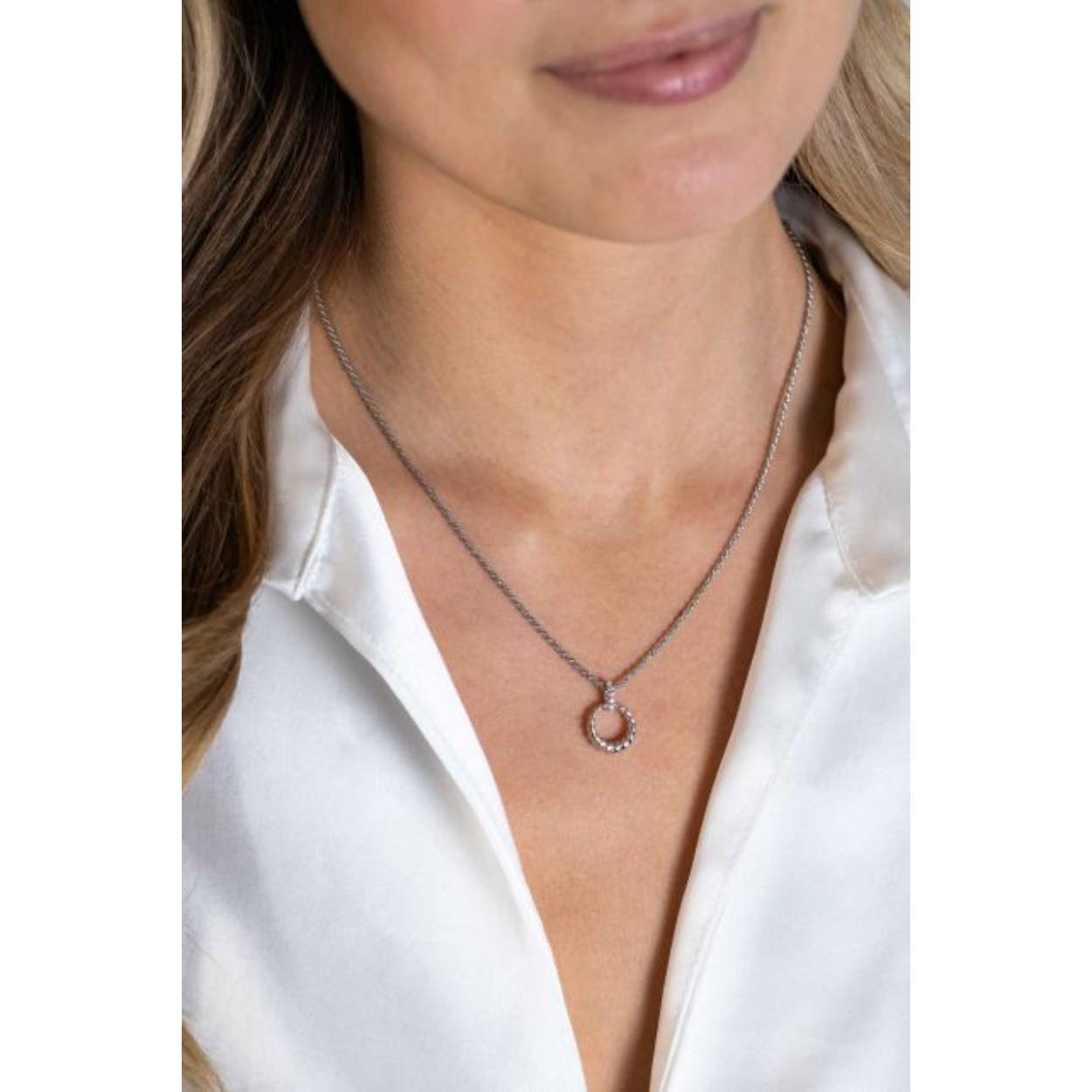 ZINZI zilveren hanger (15mm) in de vorm van een open rondje met gedraaid motief. Met sierlijk hangoog, vol bezet met witte zirconia's. Combineer met een ketting naar wens! De hanger is exclusief collier geprijsd. Vervaardigd van eerste gehalte zilver (925) en voorzien van een extra rodiumlaag voor een langdurige glans